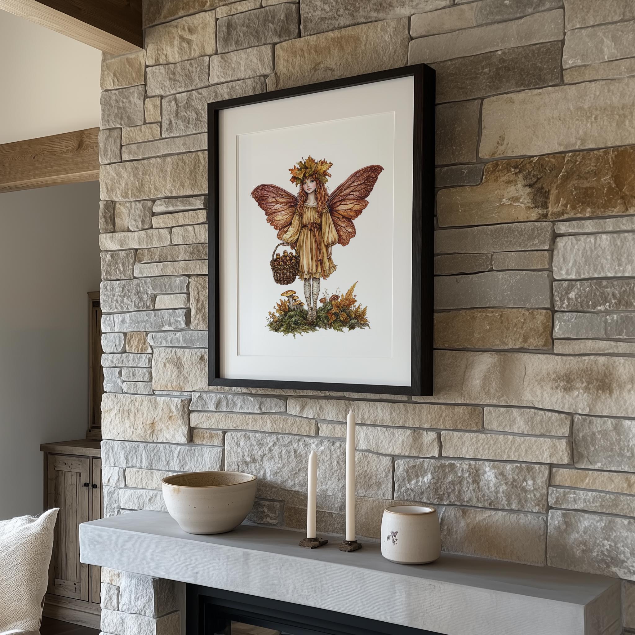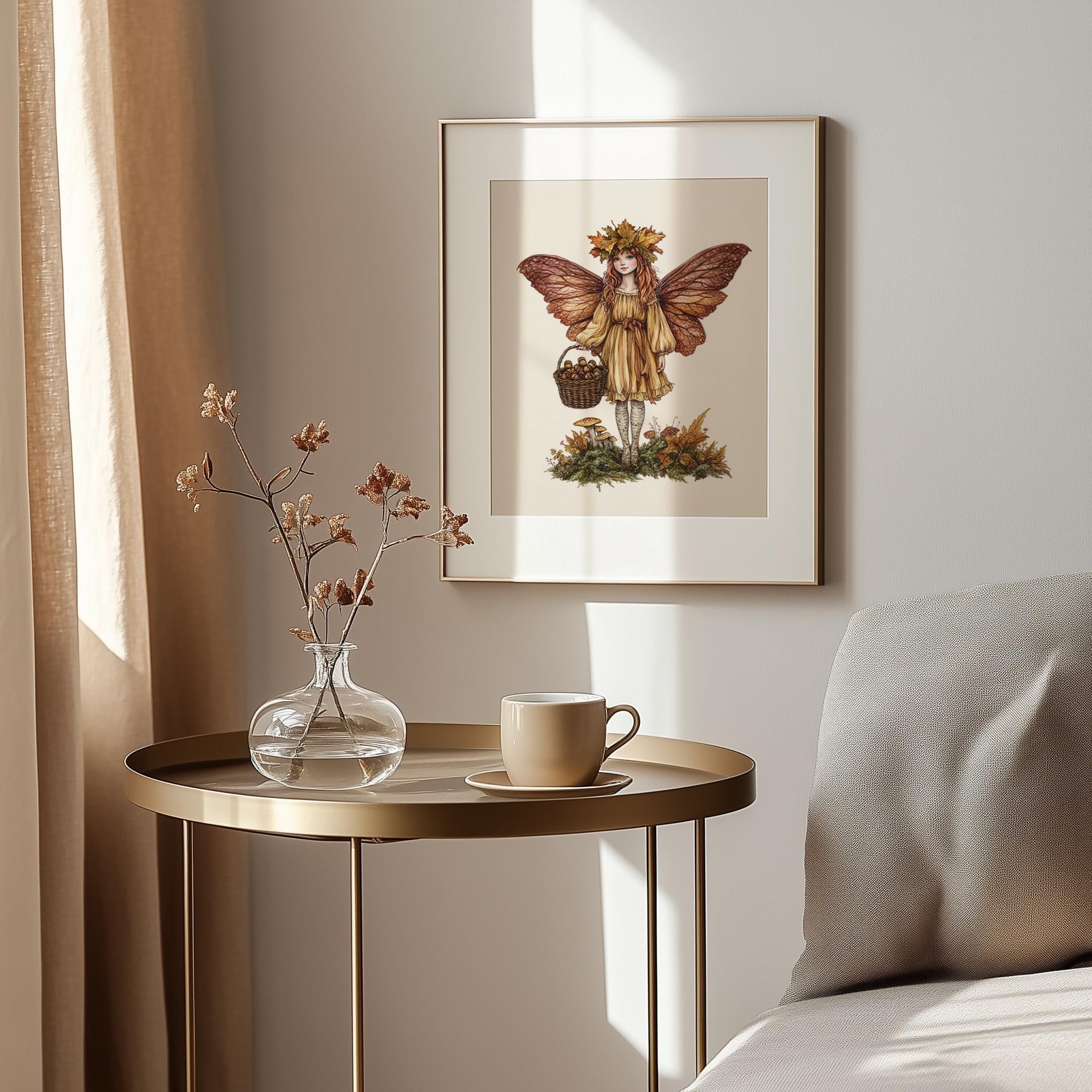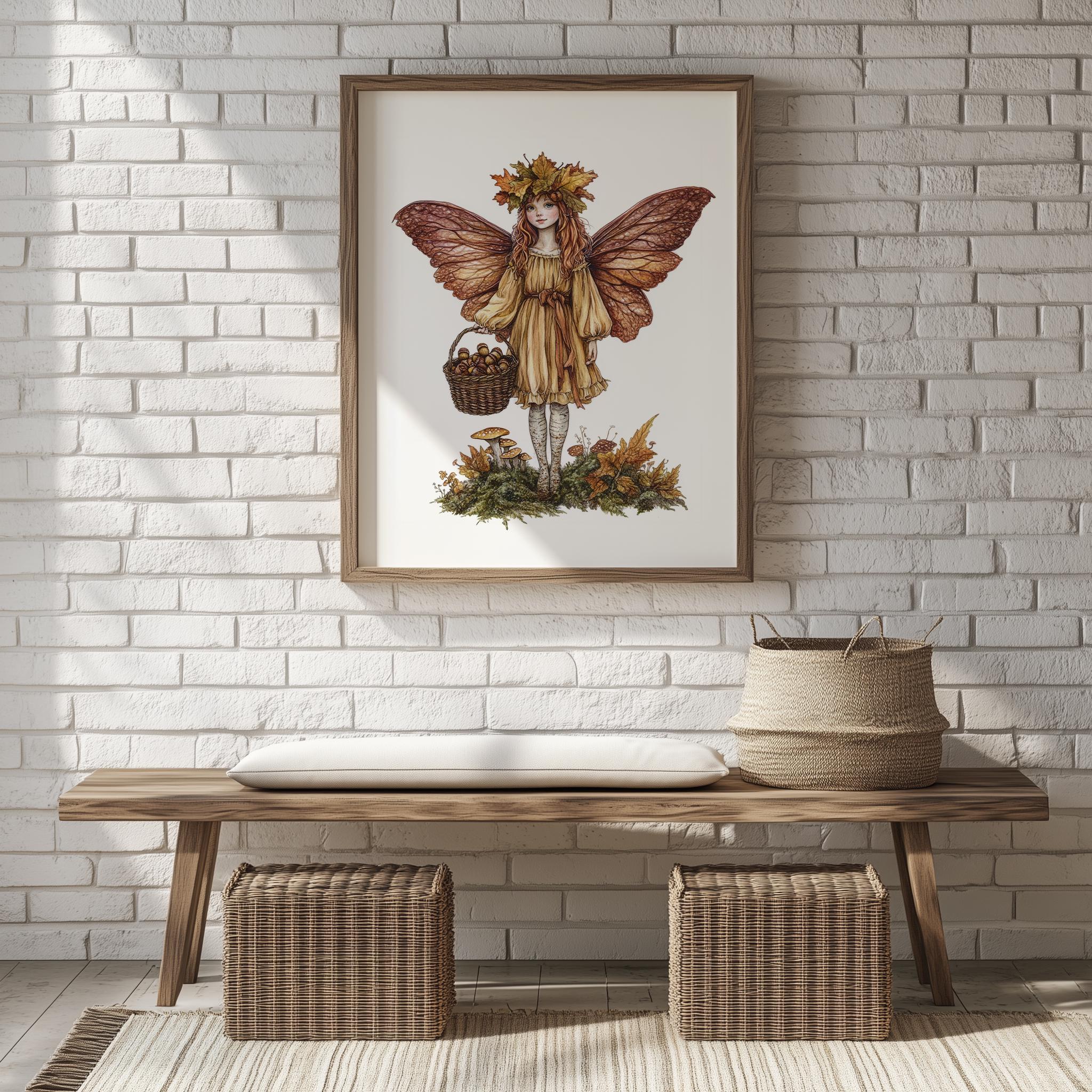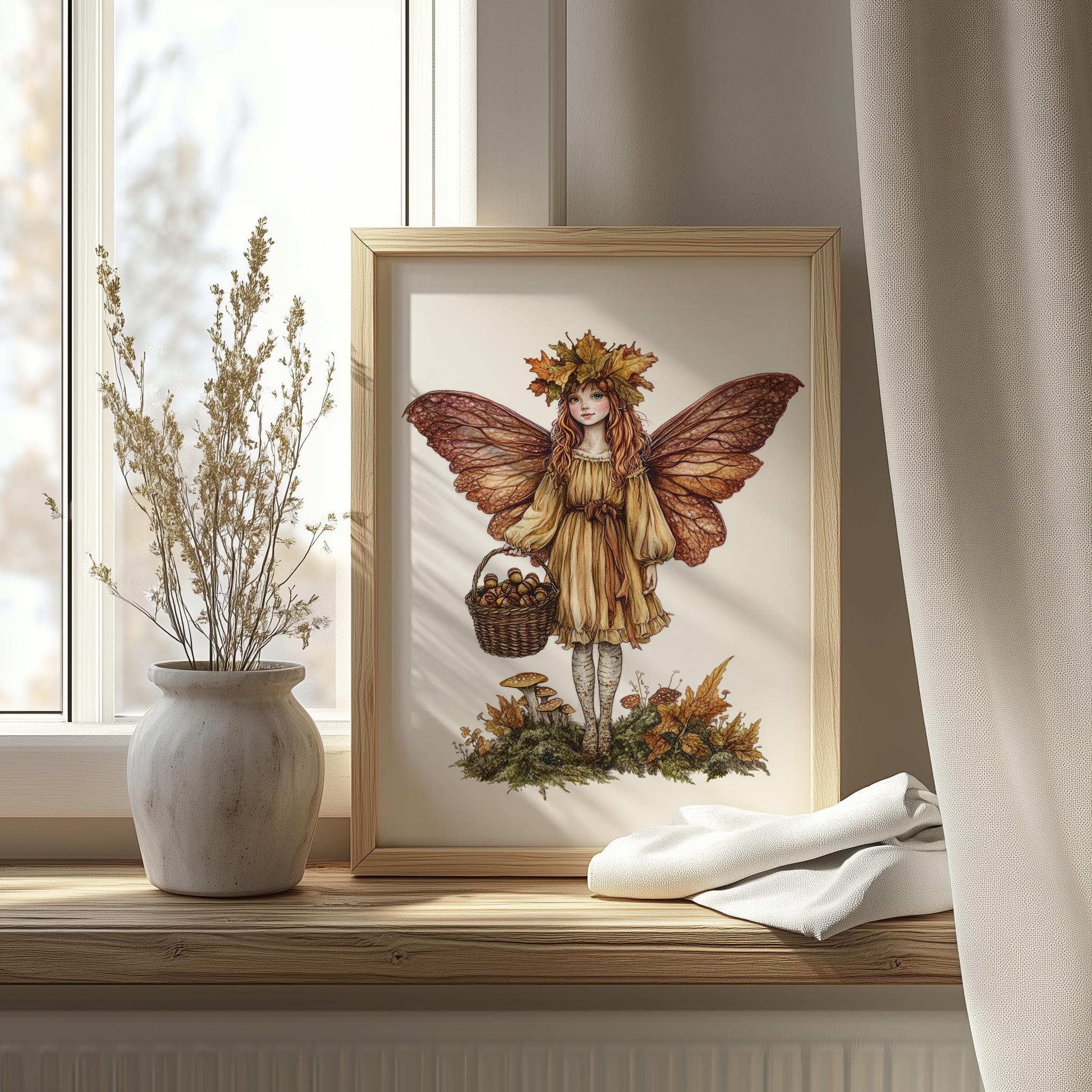 Autumn Fairy Watercolor Portrait — Vertical Digital Wall Art for Autumn Decor