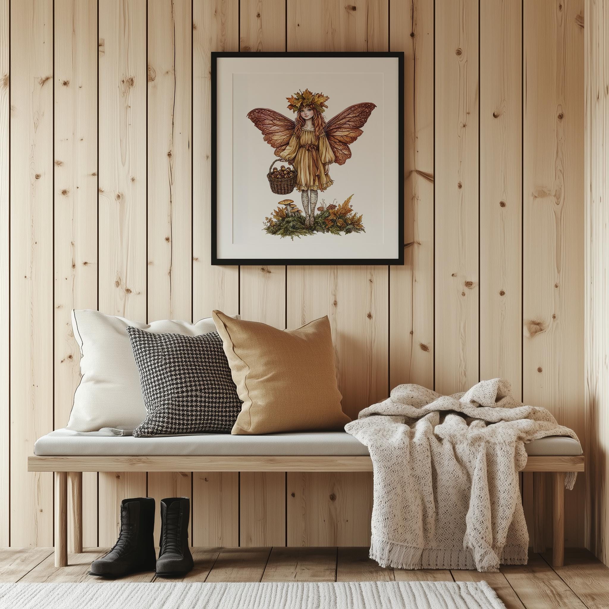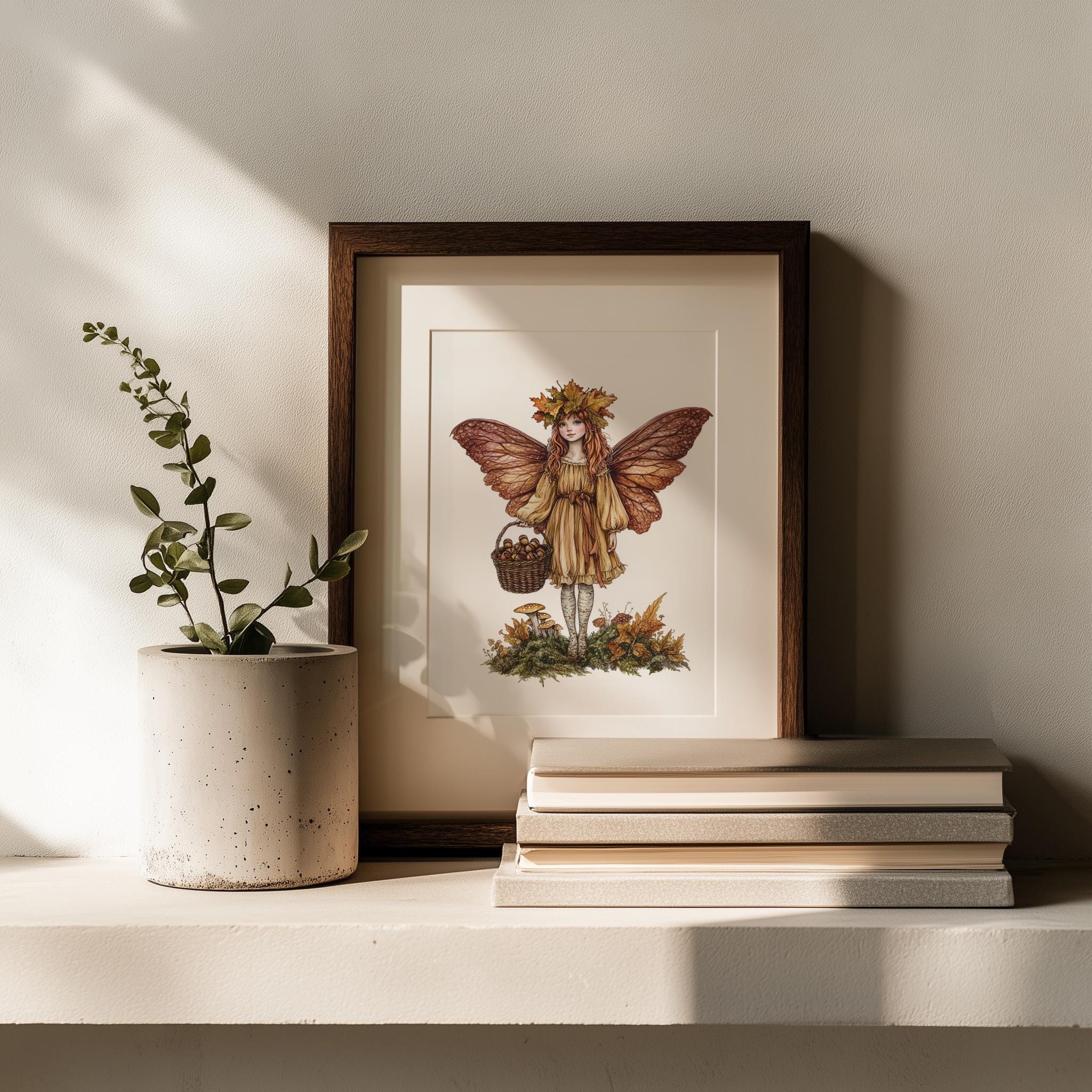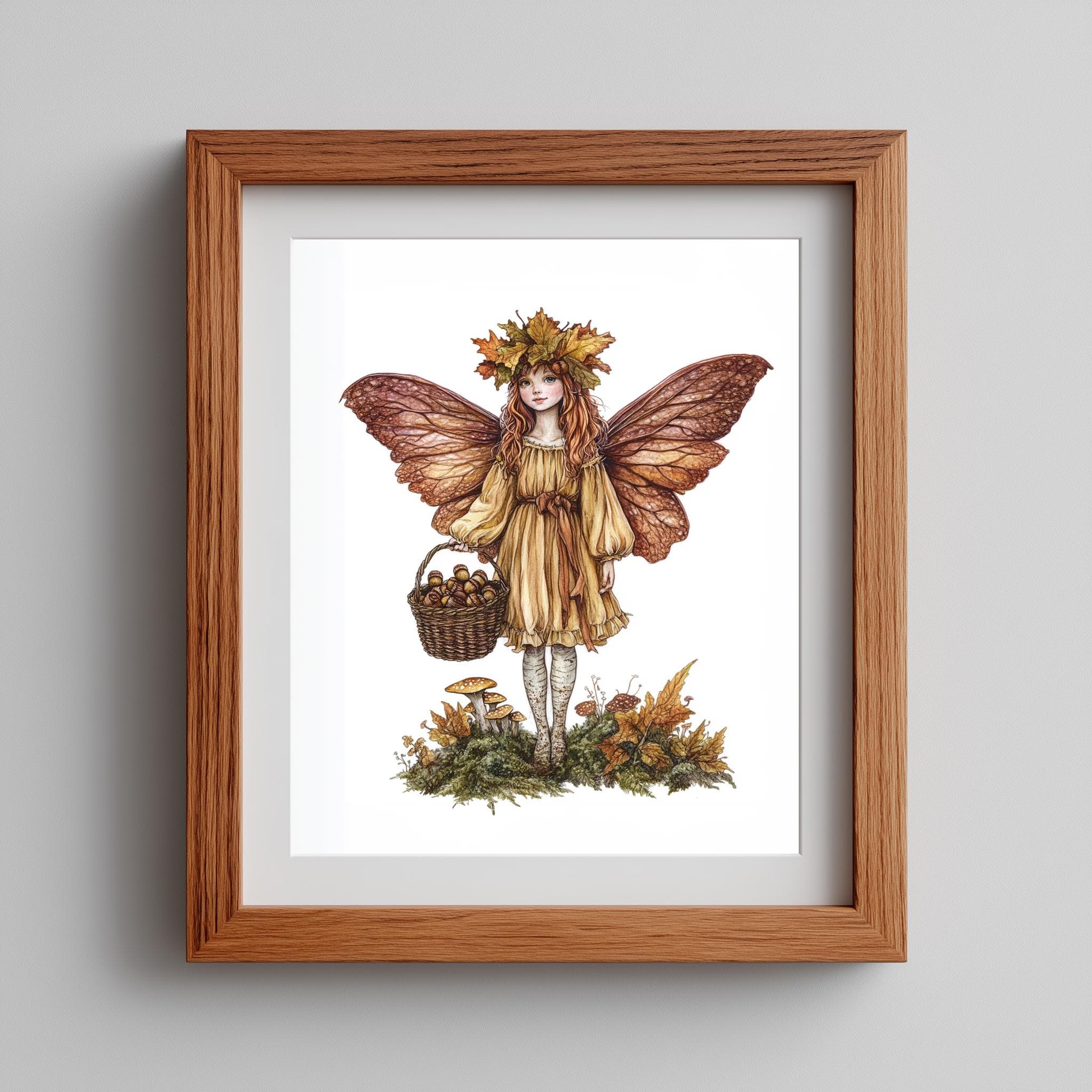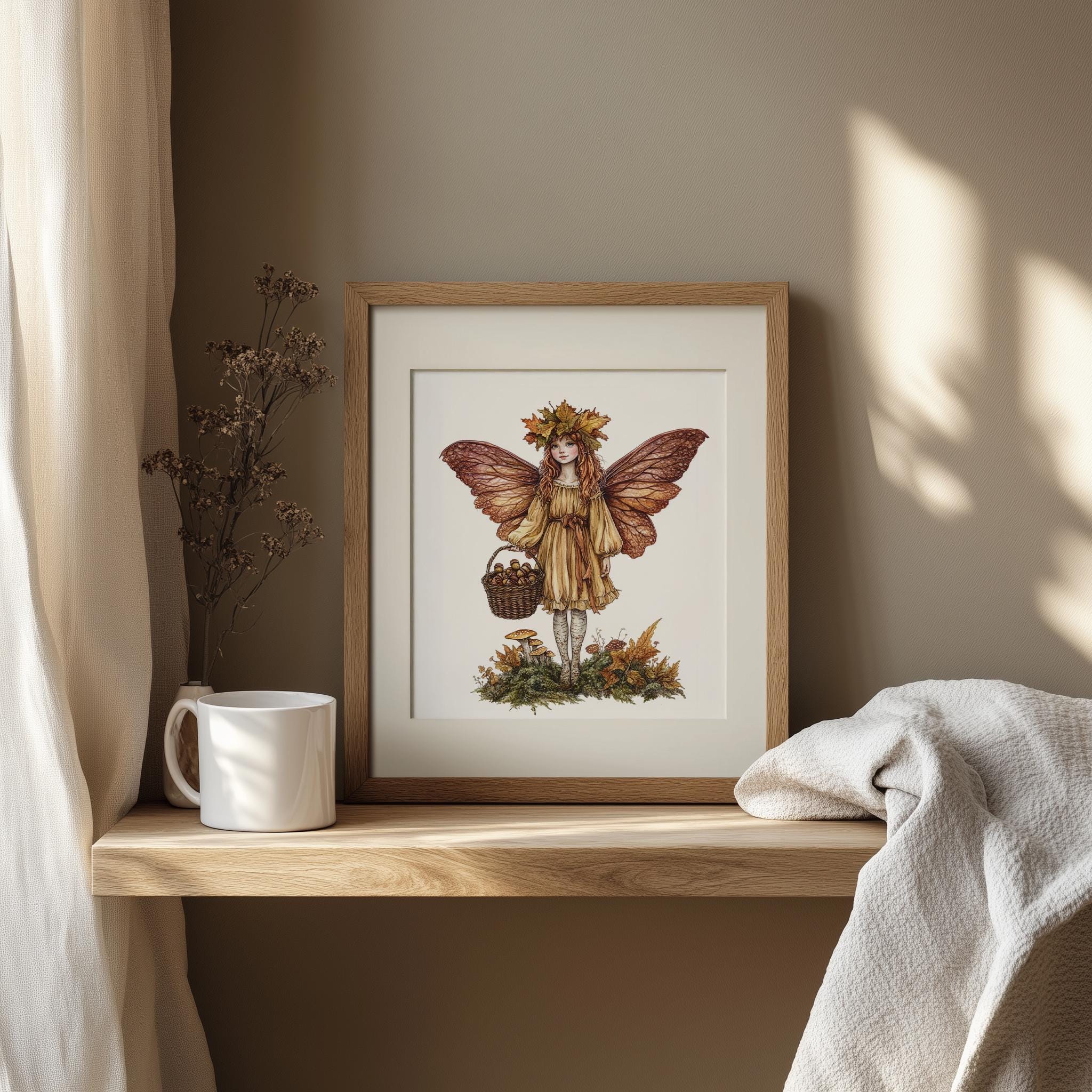Autumn Fairy Watercolor Portrait — Vertical Digital Wall Art for Autumn Decor