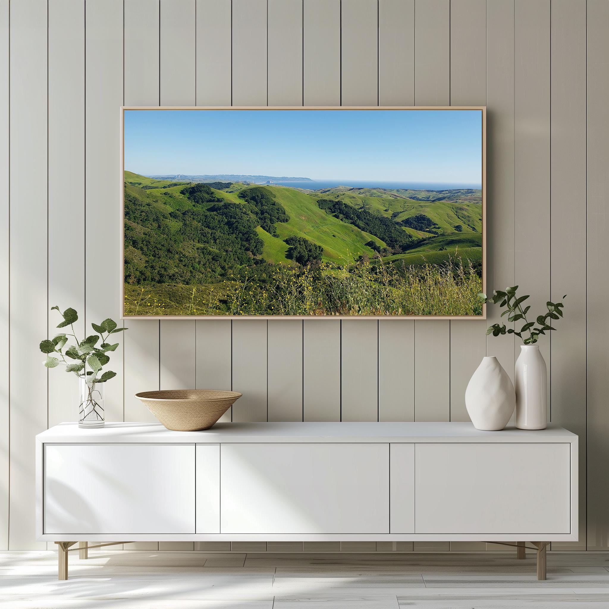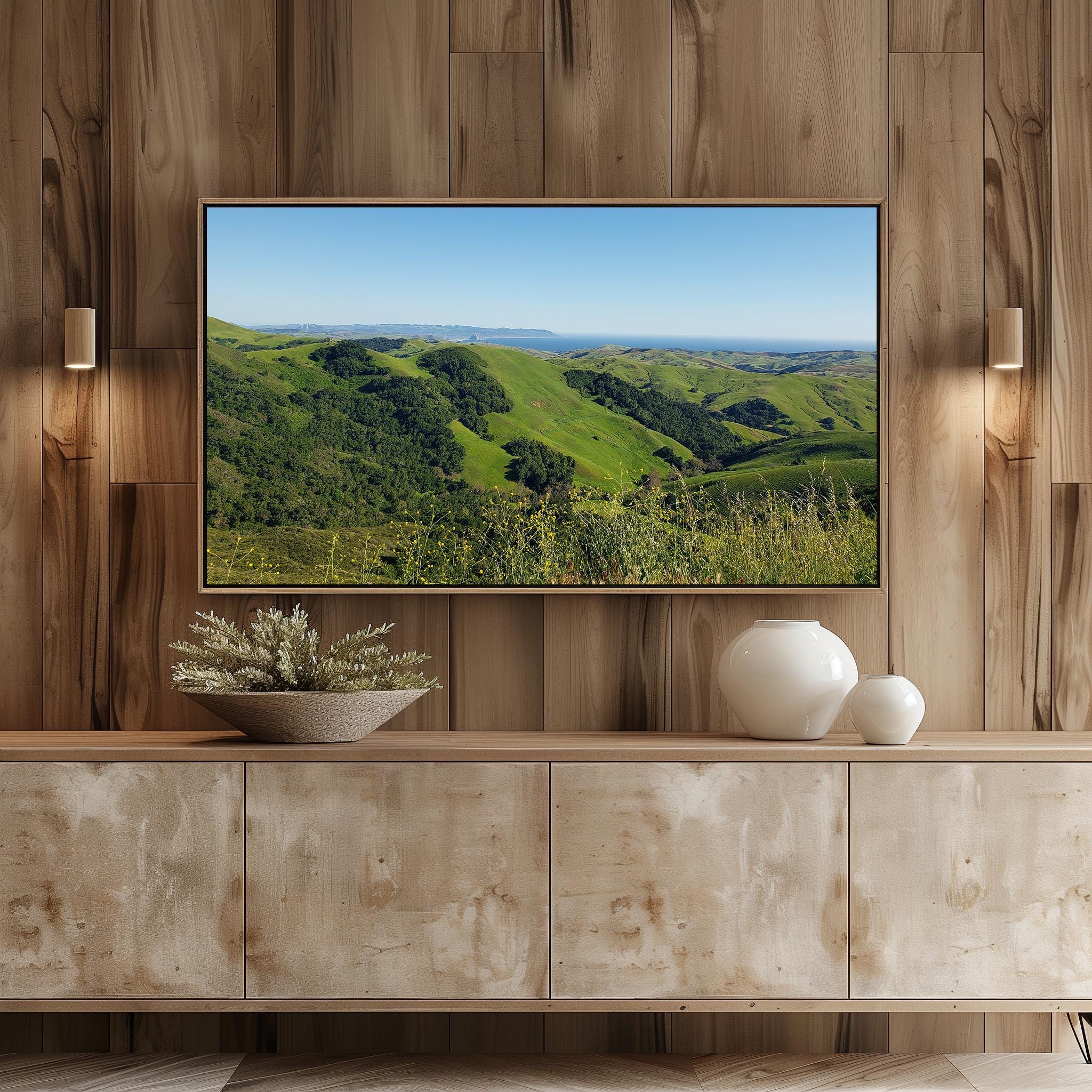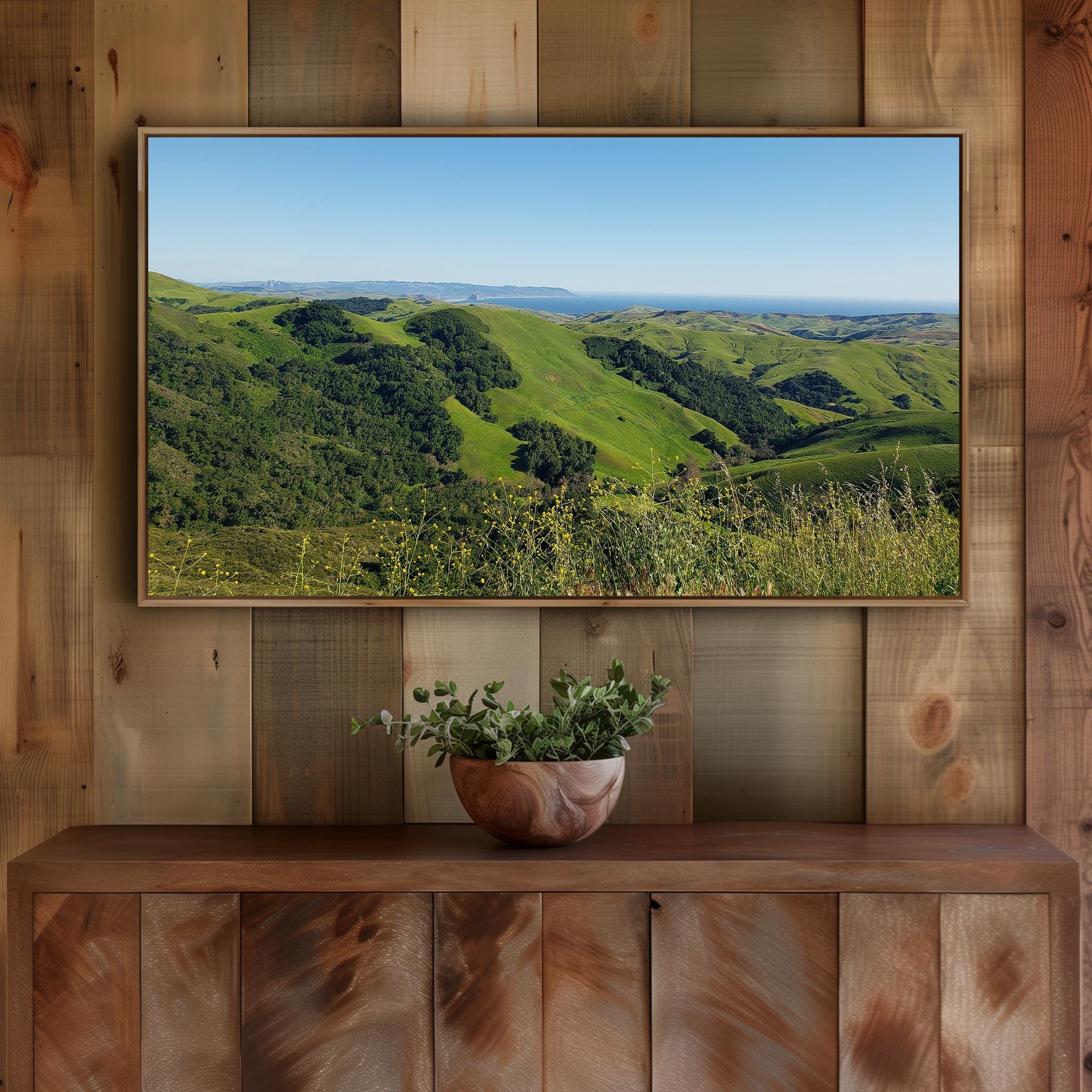This panoramic landscape captures the serene beauty of the Central California Coast, offering a tranquil escape right in your living space. Featuring vibrant colors and breathtaking scenery, this coastal photography print is perfect for enhancing the aesthetic of your home. Ideal for creating a calming atmosphere, it complements any decor style while transforming your Samsung Frame TV into a captivating focal point. Enjoy the peaceful vibes and natural beauty every time you turn on your TV.