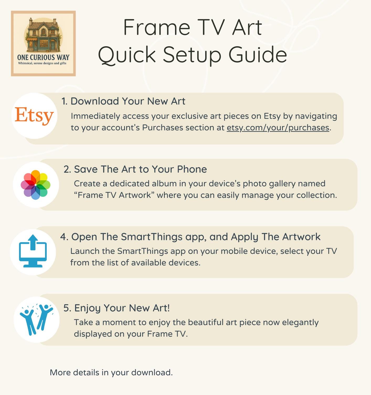 This is a digital file only — no physical product will be shipped. Simply download, upload to your Samsung Frame TV using the SmartThings app, and elevate your home instantly.