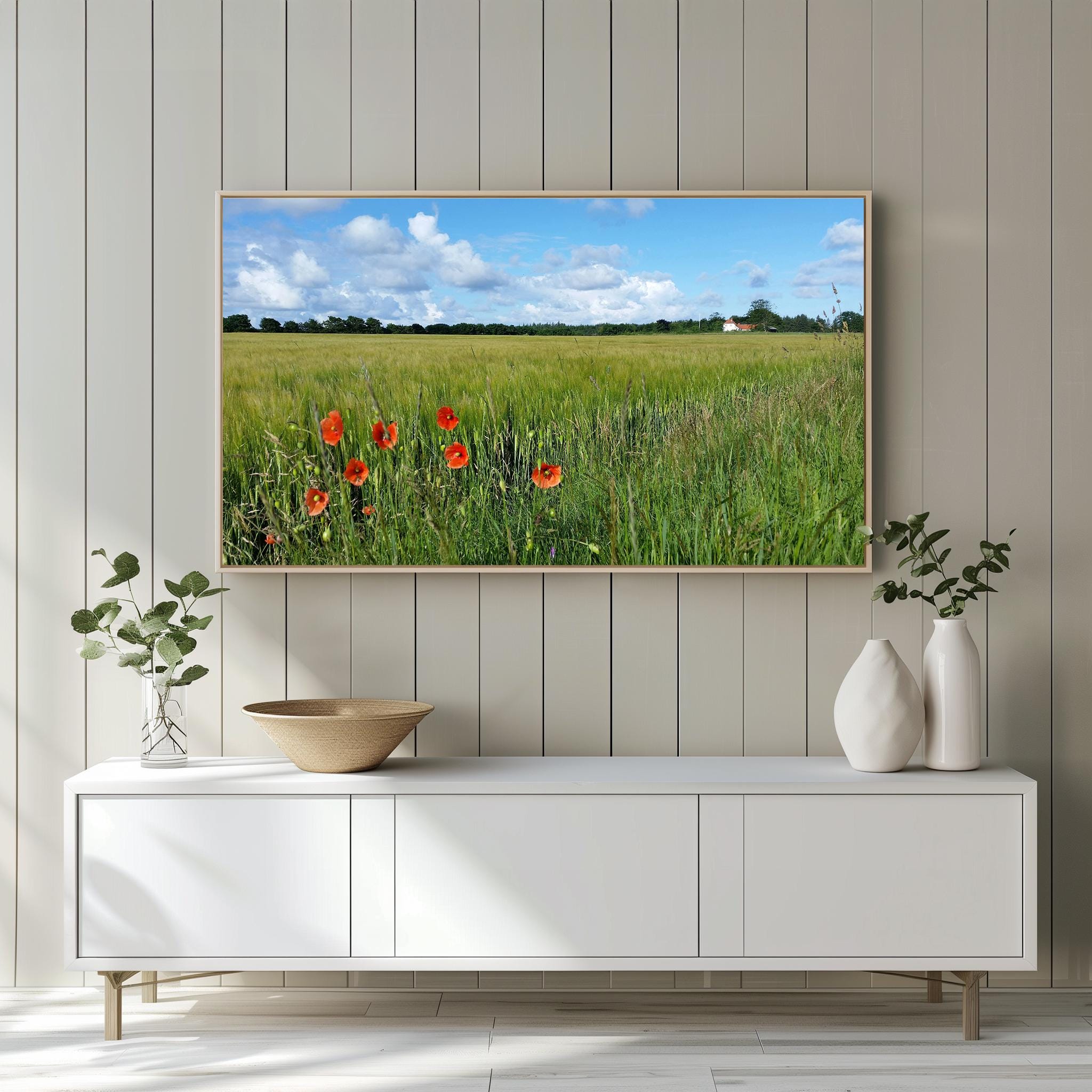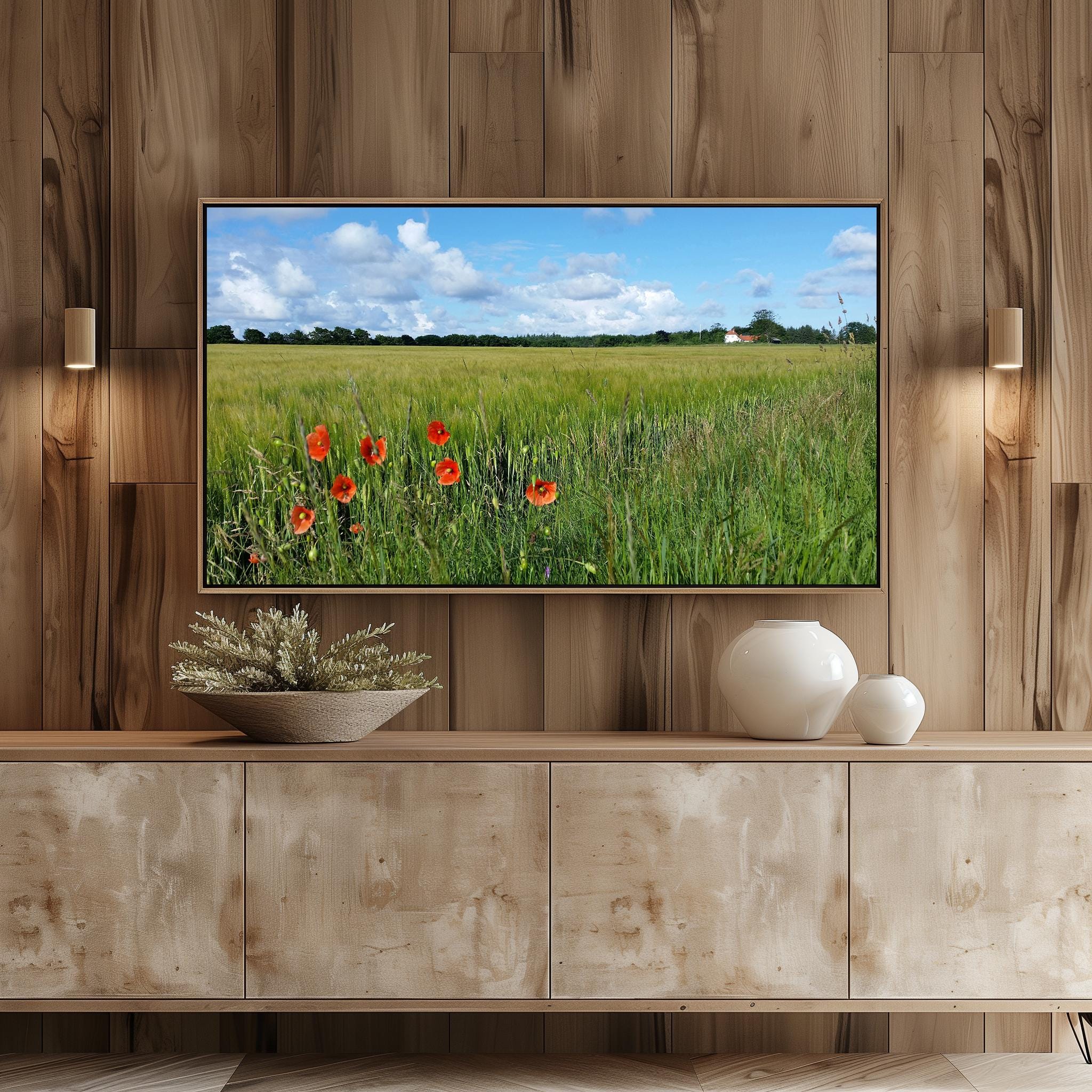 This enchanting photo captures the serene beauty of a barley field in Western Denmark adorned with vibrant poppies, evoking a sense of tranquility and connection to nature. Perfect for enhancing your living space, this rustic farmhouse landscape will bring a warm, pastoral touch to your home decor. Ideal for cottagecore enthusiasts, this digital download is designed for easy integration with your Samsung Frame TV, allowing you to showcase seasonal beauty throughout the year.